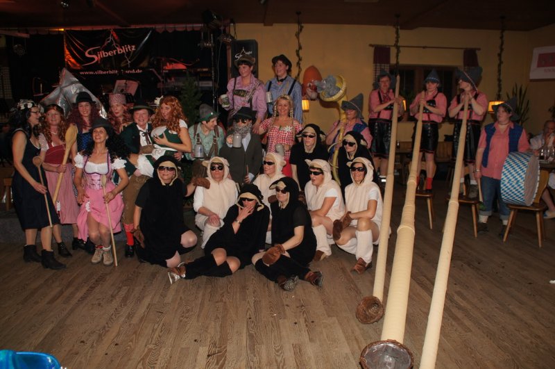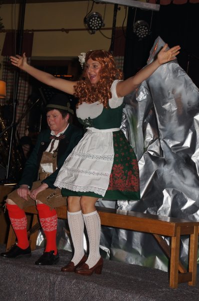 Mit den Alphornbläsern begann die Einlage der Faschingsfrauen. Sodann gaben sich die Heidi mit ihrem Großvater und dem Geißenpeter ein stelldichein in Aufhausen. Die Herde vom Peter zeigte ihre Kunststücke und einen Tanz sowie ein Glockenspiel.
